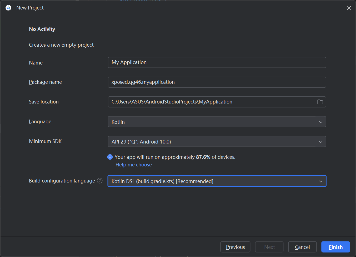 这一步很简单,取个名字就可以。另外我们使用的是kotlin DSL,这是一个更现代的包管理解决方案,它的特点是提供了模块间解耦,分为项目级配置、模块级配置与项目设置。本教程也会围绕它来展开。