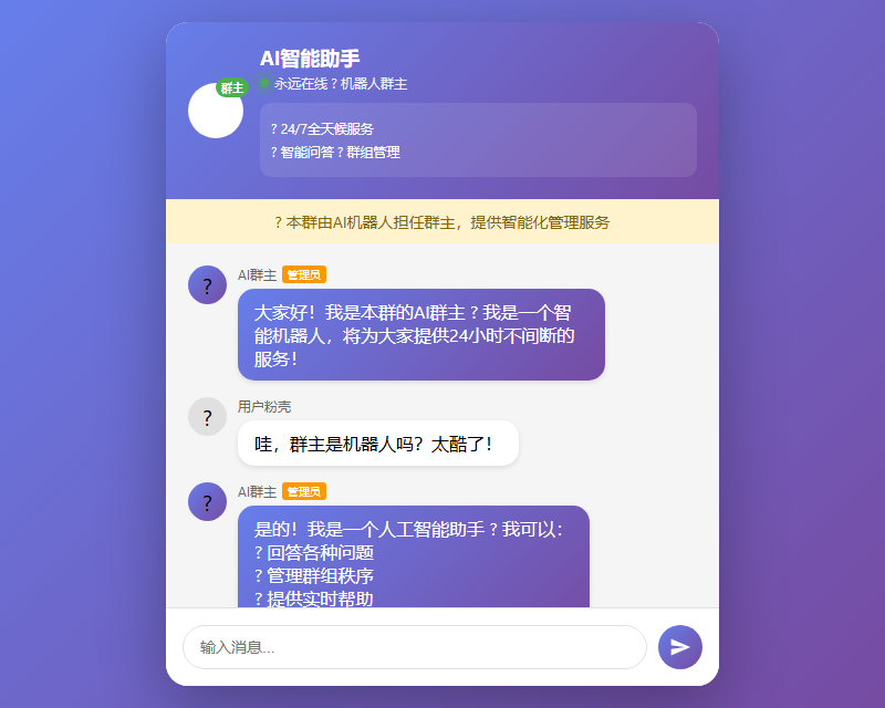 哇,群主是机器人吗?太酷了!竟然是机器人群主欸,好厉害啊。