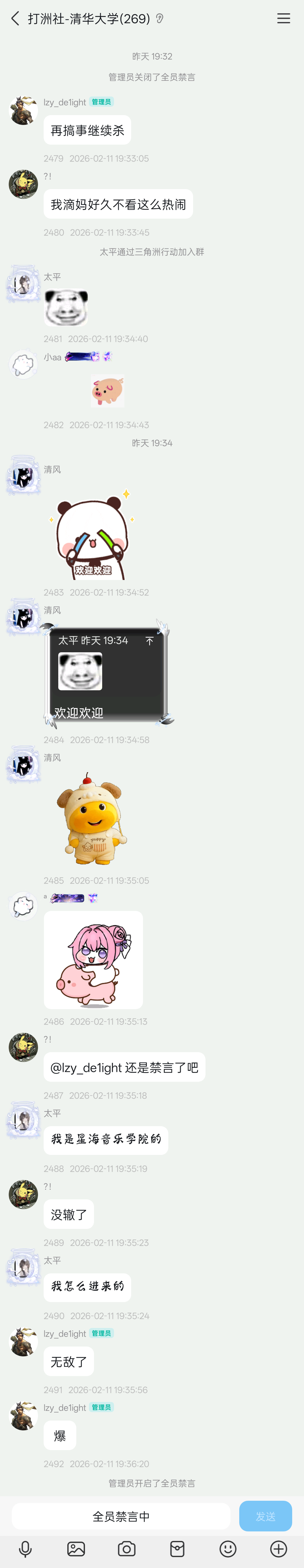 当然,过了一会他又解除全员禁言了: